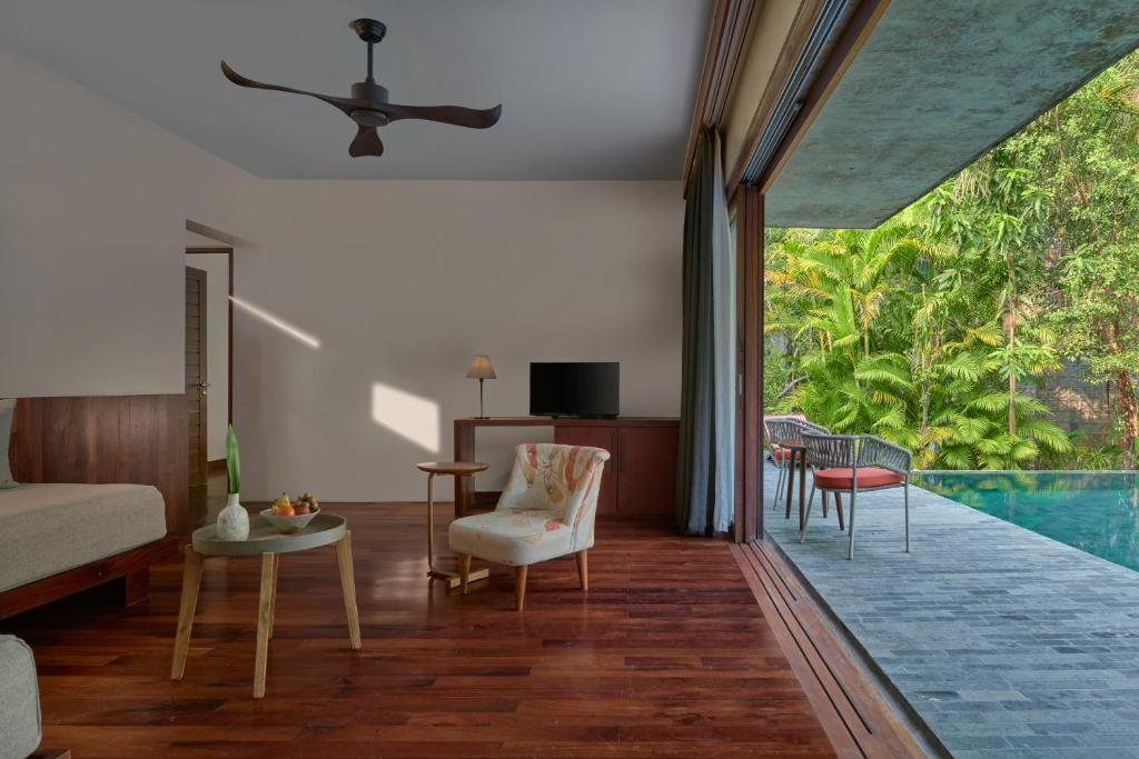 Bright, refined rooms with hardwood floors provide Wi-Fi, flat-screen TVs, and terraces with garden views, along with minibars, tea and coffeemaking facilities, and en suite bathrooms. Upgraded rooms add private pools and living areas.
