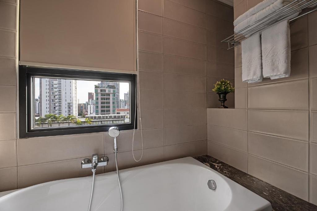 Leisure Facilities: Guests can relax by the rooftop pool with city views or enjoy the terrace and balcony. The property also offers a fitness centre, sauna, and spa services.