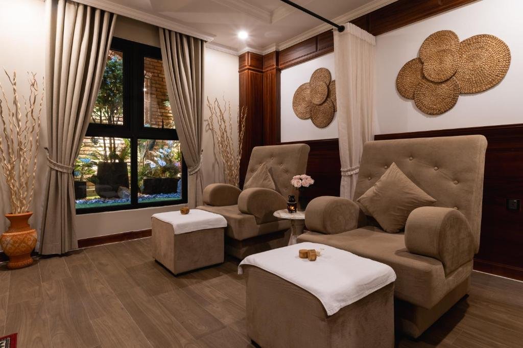 Dining Experience: The hotel features a restaurant serving Chinese, French, Indonesian, American, Thai, and Cambodian cuisines. Breakfast is provided daily, with options for vegetarian, vegan, and gluten-free diets. Additional services include high tea and cocktails.