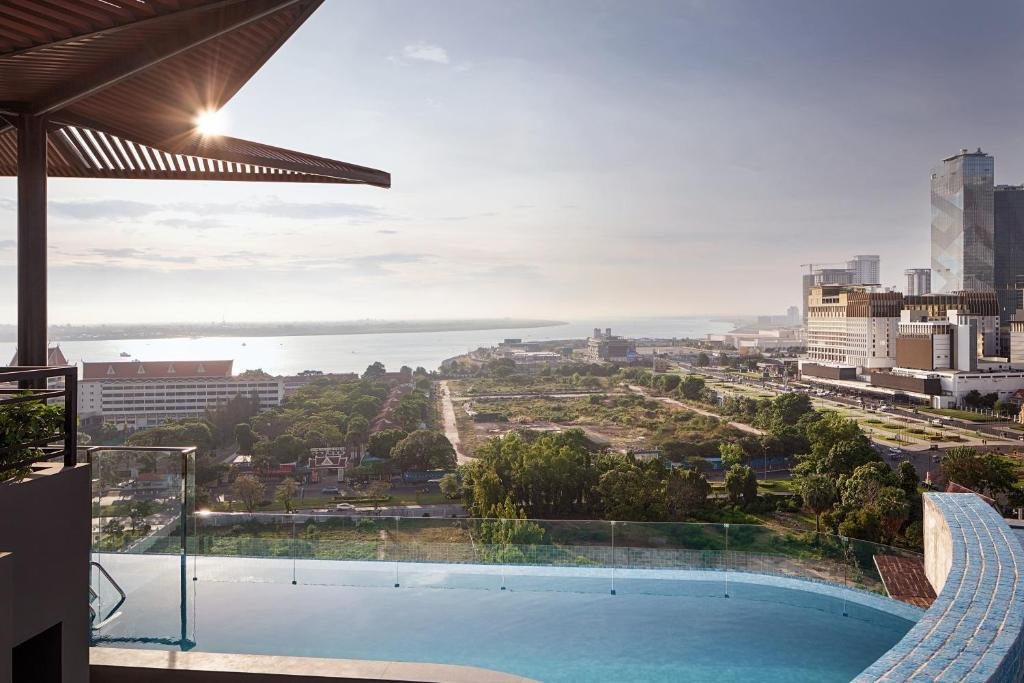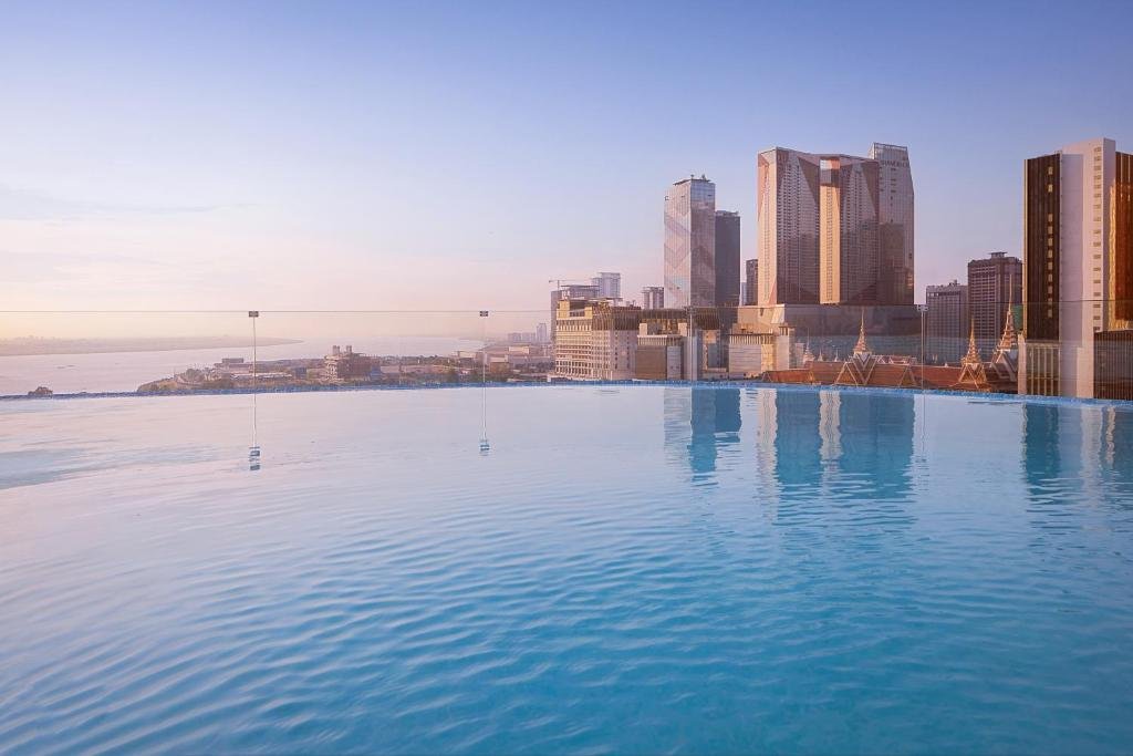 Relax at our infinity pool with 360-degree views of Phnom Penh and the Chaktomuk River. Enjoy dining at Savory Restaurant, elevate your experience at our rooftop Sky Bar, or unwind in the VIP lounge. Pamper yourself at our spa, sauna, or steam room with skilled therapists. Whether seeking relaxation or invigoration, our facilities cater to every need.