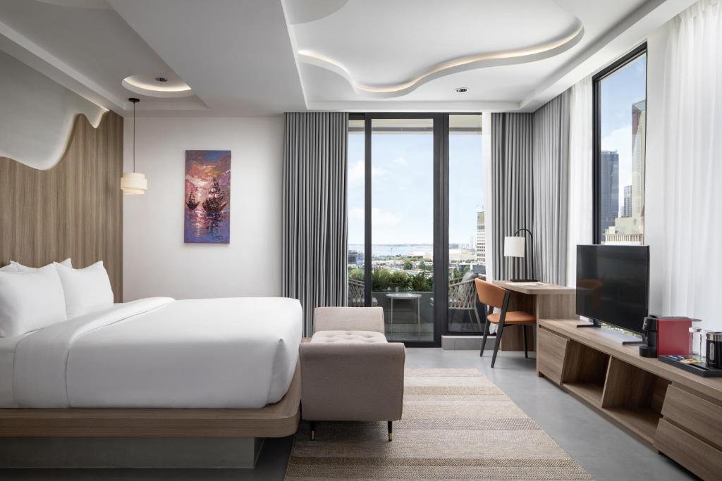 Comfortable Amenities: Rooms feature air-conditioning, balconies with city or river views, private bathrooms, and modern amenities such as minibars and flat-screen TVs. Additional facilities include a hot tub, spa bath, and work desks.