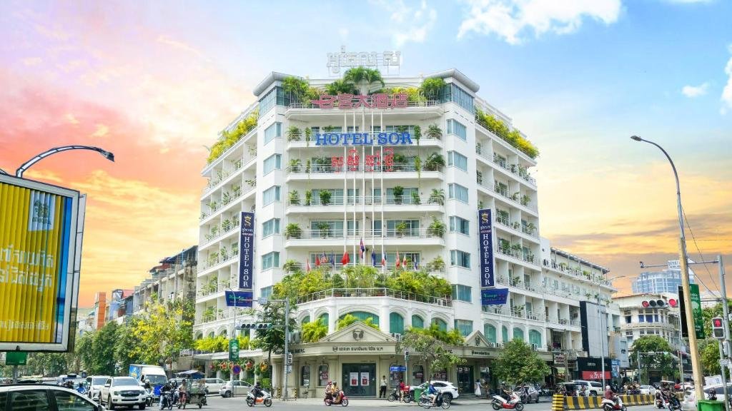 Comfortable Accommodations: Hotel Sor in Phnom Penh offers family rooms with air-conditioning, private bathrooms, and city views. Each room includes a work desk, minibar, and free WiFi.
