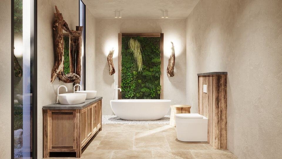 Accommodation of 65m², with separate double bedroom, spacious living room with integrated open plan kitchen, bathroom and with large garden and views to the pool.