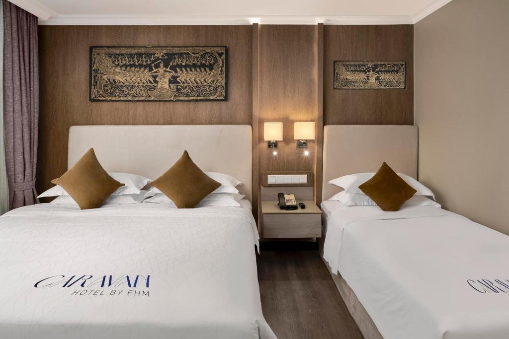 Comfortable Accommodations: Caravan Hotel by EHM in Phnom Penh offers family rooms with air-conditioning, private bathrooms, and modern amenities. Each room includes a work desk, minibar, and free WiFi, ensuring a pleasant stay.